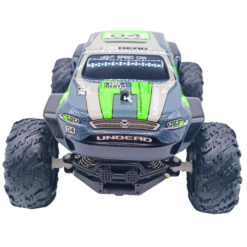 - Sağlam ve dayanıklı gövde: Bu uzaktan kumandalı arazi aracı dış mekanlardaki zorlu sürüşlerde yaşanabilecek çarpışmalara ve taklalara karşı esnek malzemeden üretilmiştir.