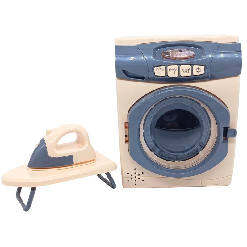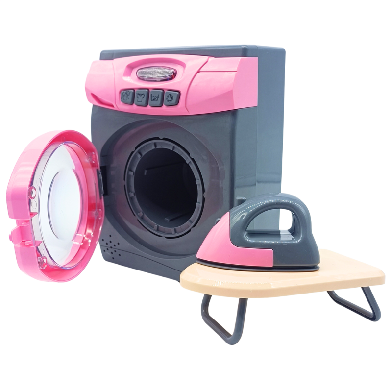 Aya Toys Işıklı Sesli Dönen Kazanlı Çamaşır Makinesi ve Ütü Seti 40302, çocukların evcilik oyunlarını daha gerçekçi hale getiren detaylı bir oyuncak çamaşır makinesi ve ütü setidir.