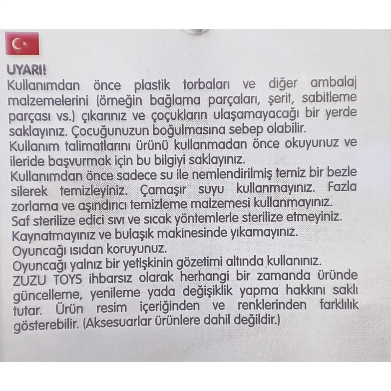 3 yaş ve üzeri çocuklar için uygundur. Boğulmaya neden olabilecek sivri ve küçük parçalar içerebilir. Ebeveyn denetiminde çocuğunuza veriniz. Ürünün ambalajı ürüne dahil değildir. Lütfen ürünü çocuğunuza vermeden önce ambalajını tamamen açınız ve ambalajını çocuğunuza vermeyiniz.