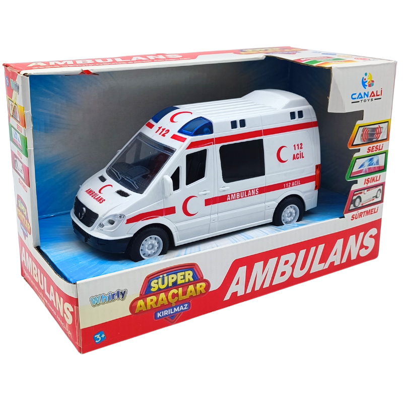 Canali Toys Işıklı Pilli Oyuncak Ambulans CNL-9999 Çocukların ilk yardım kahramanı olma hayallerini süsleyen, gerçeğe uygun sesli ve ışıklı kırılmaz oyuncak ambulans. 1NKW7GKA2A