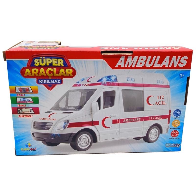 Çocukların hayal gücünü harekete geçiren ve aksiyon dolu görevlere kapı aralayan Can Ali Toys sesli ve ışıklı oyuncak ambulans, miniklerin araç koleksiyonundaki favori parçası olmaya aday. Ebeveynlerin uzun ömürlü kullanım için en çok aradığı "kırılmaz oyuncak araba" yapısını, heyecan verici oyuncak ambulans özellikleriyle mükemmel bir şekilde bir araya getiriyor.