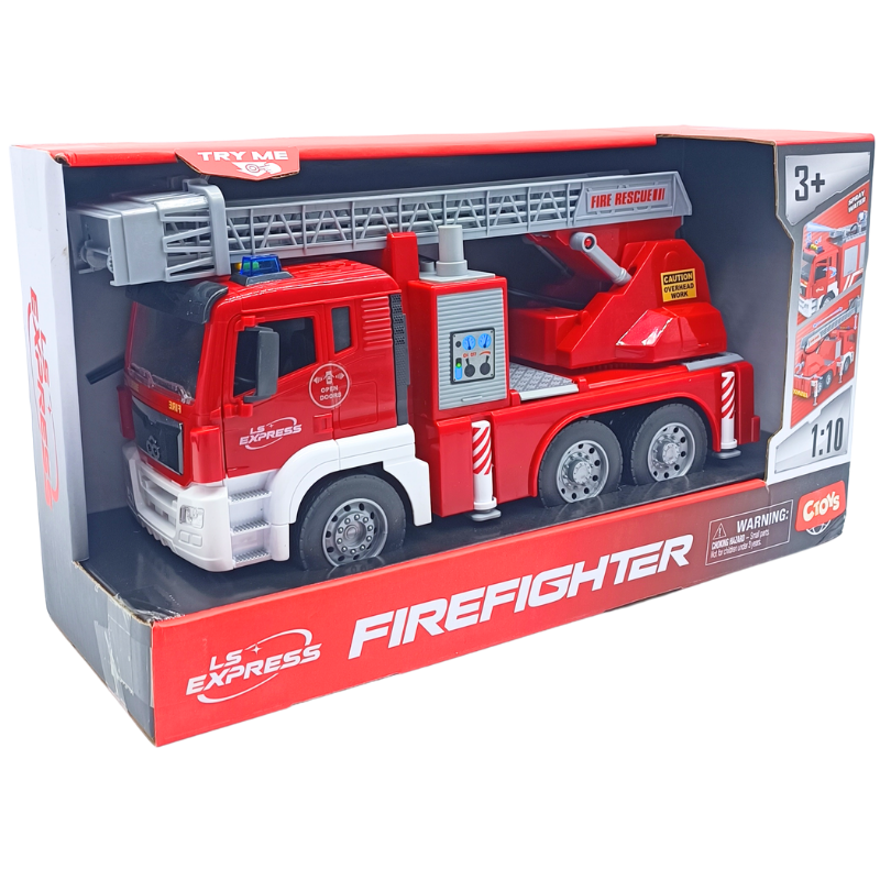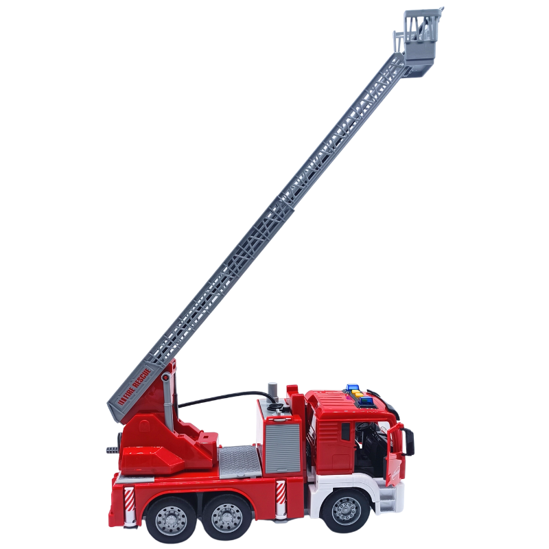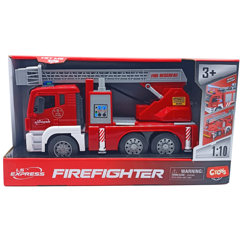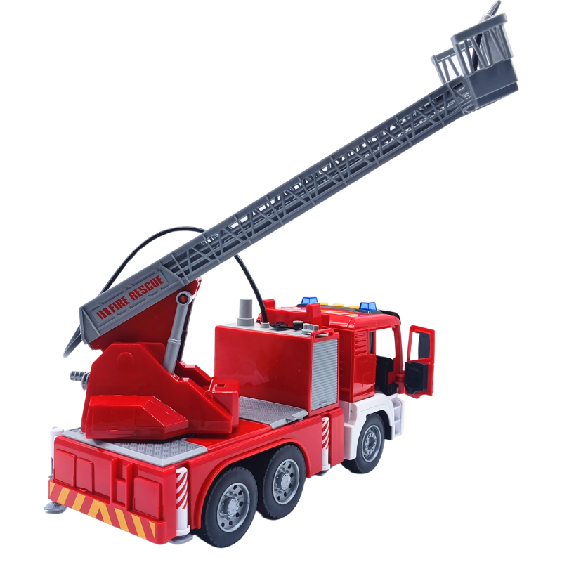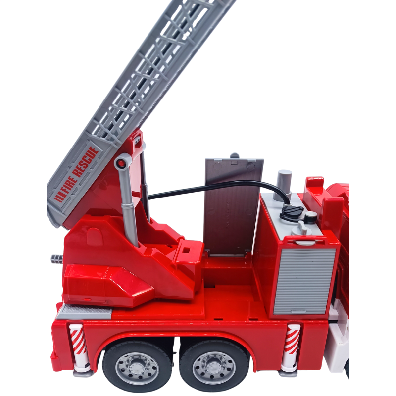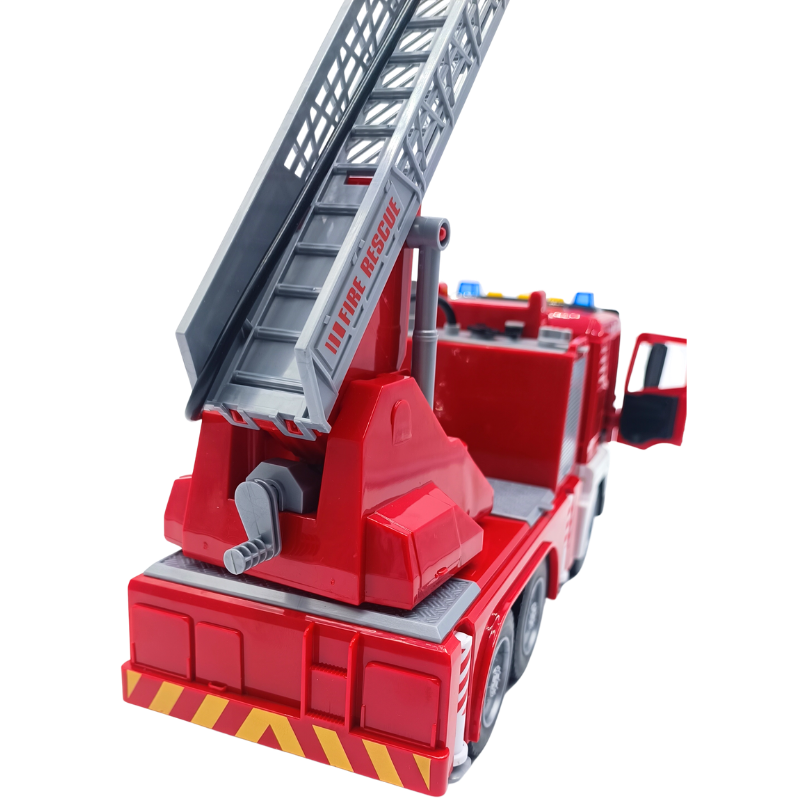 - Özellikler: Sürtmeli yapısıyla eğlence sürekli devam eder. İtfaiye üzerinde bulunan hortum minik su deposuna bağlanır ve gerçek bir itfaiyeyi simüle eder. Su haznesi yerinden çıkartılabilir,bu şekilde su doldurmak daha kolay hale gelir. Oyuncak itfaiyenin merdiveni arkasında bulunan çark ile manuel olarak yükseltilebilir, yaklaşık 50 cm boya ulaşabilir. Bu harika itfaiye aracının kapıları açılabilir, aynı zamanda sesli ve ışıklıdır.