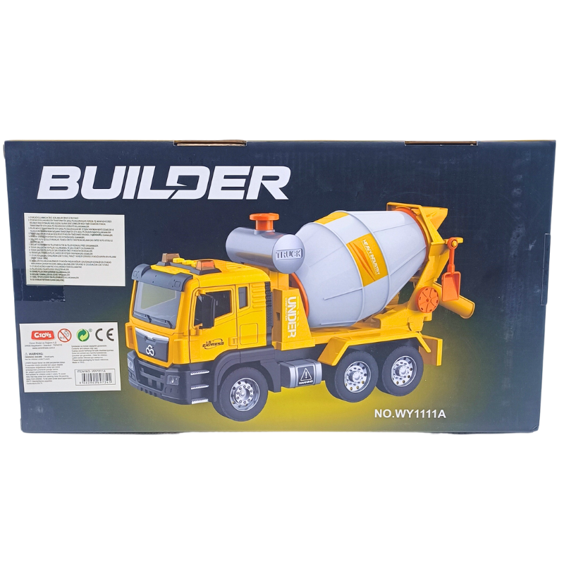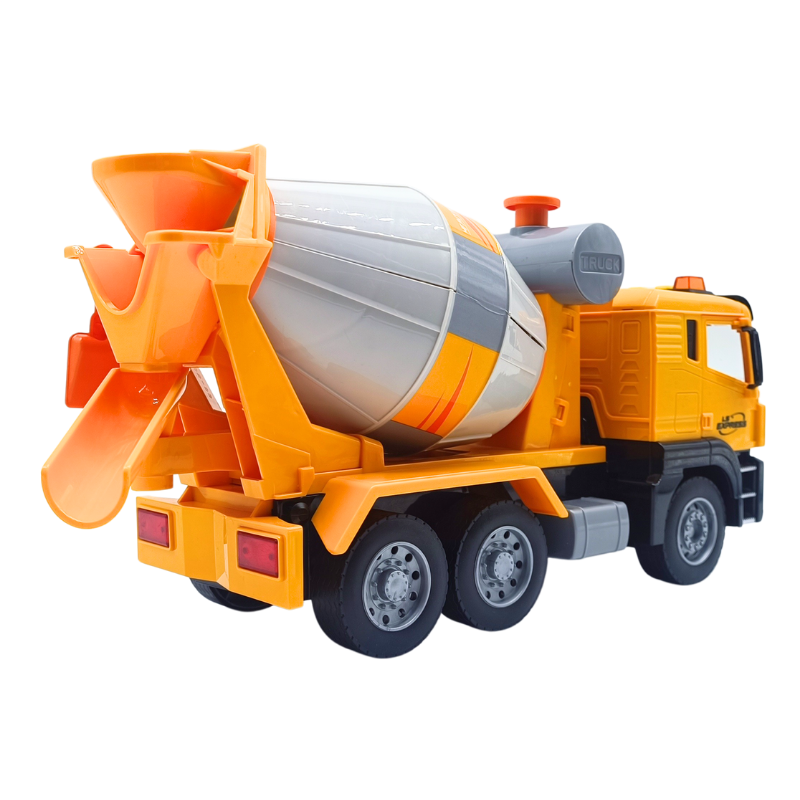 Üzerindeki tuşlara basıldığında çalışan siren sesleri ve yanıp sönen ışıkları oyun zevkini ikiye katlar. Mikserin arka haznesi manuel olarak döndürülebilir; böylece çocuklar kum veya küçük oyuncakları içine koyup tıpkı gerçek bir inşaat alanındaymış gibi "beton dökme" oyunu oynayabilirler.