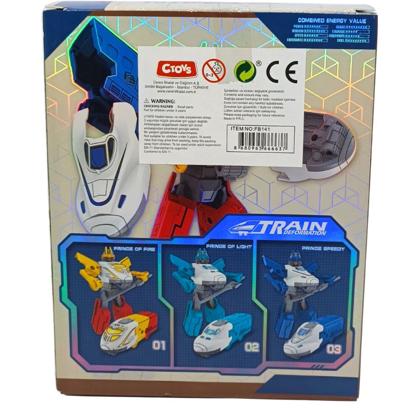 CTOY FB141 Trene Dönüşebilen Robot, hem tren hem robot formuna dönüşebilen çift modlu akıllı bir oyuncaktır. Karışık renkte sunulan bu model, çocuklara dönüşüm oyunu, yaratıcı düşünme ve el-göz koordinasyonu becerileri kazandırır.