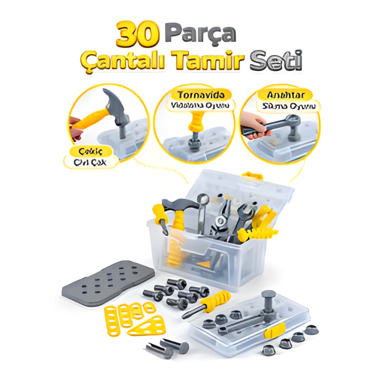 Çocukların merak duygusunu besleyen ve onlara problem çözme yeteneği kazandıran en güzel araçlardan biri kendi elleriyle bir şeyleri onarmaya çalışmalarıdır. Dolu Oyuncak imzasını taşıyan bu çantalı oyuncak tamir seti, evdeki minik ustaların hayal güçlerini çalıştırıp el becerilerini geliştirmeleri için harika bir fırsat sunuyor. Gerçek bir atölye deneyimini güvenli bir şekilde çocukların dünyasına taşıyor.