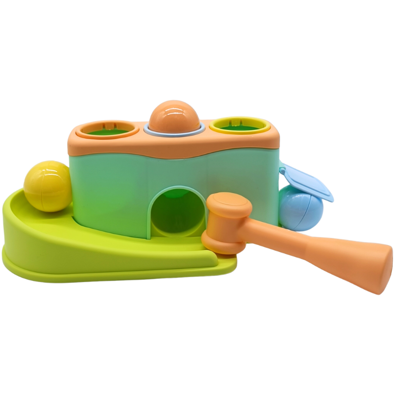 Minik Kaslar Çalışsın: Çekici tutup o deliklerdeki toplara isabet ettirmeye çalışmak, bebeklerin kol kaslarını harika şekilde güçlendirir. Bu vur yuvarla oyuncak ince motor becerilerinin gelişimi için tam bir antrenmandır.