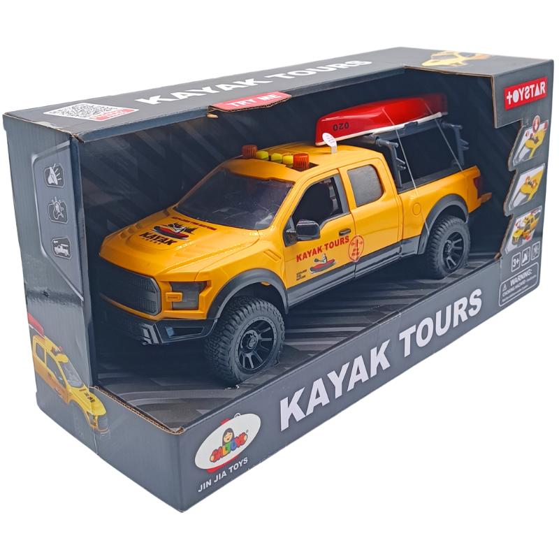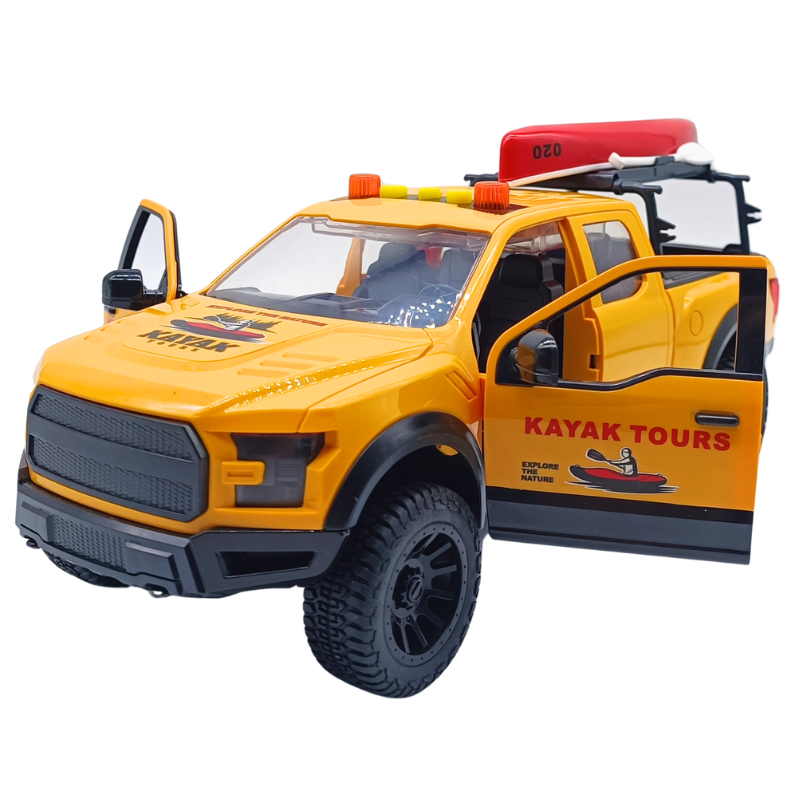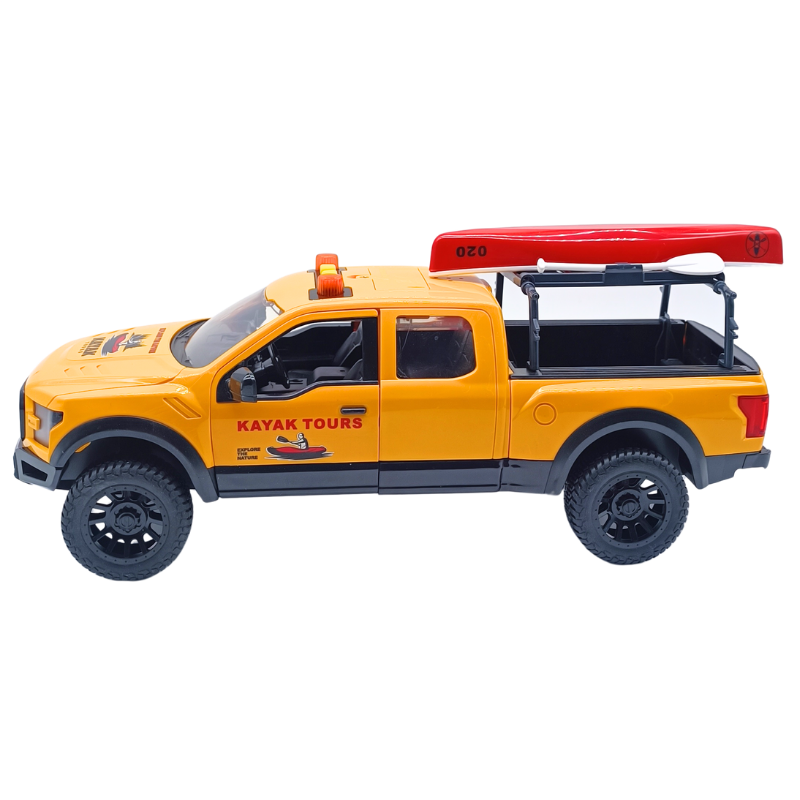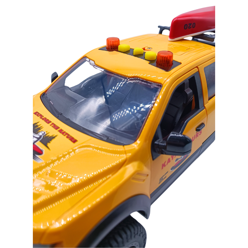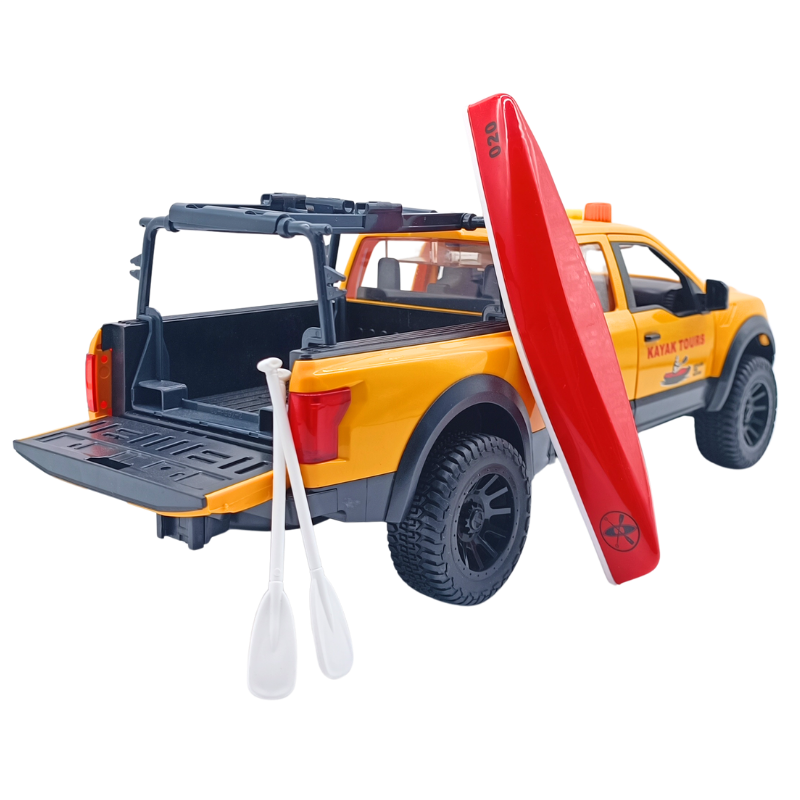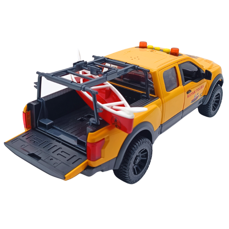 • Ayrılabilir kano aksesuarı: Bu dikkat çekici oyuncak pickup modelinin arkasında veya tavanında taşınan kano yerinden çıkarılıp ayrı bir oyuncak olarak da kullanılabiliyor. Bu sayede çocuklar ister karada zorlu bir sürüş yapıyor ister hayali bir nehirde kanoyla kürek çekiyor.
