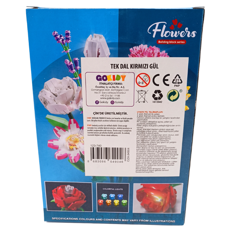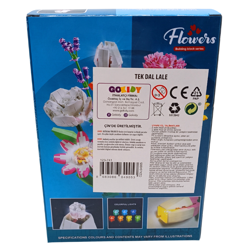 Gokidy Renkli Işıklı Yapı Blok Çiçekler Lale ve Gül 64905/64904