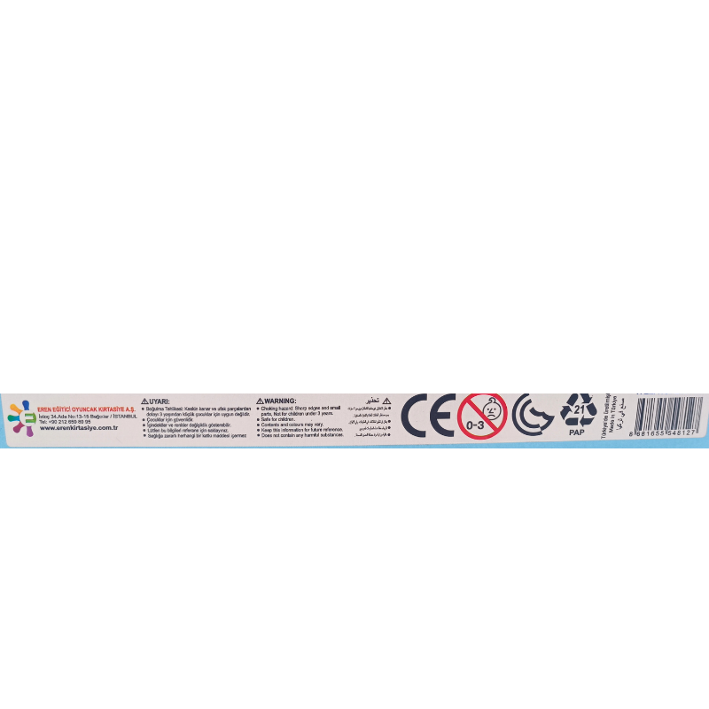 3 yaş ve üzeri çocuklar için uygundur. Boğulmaya neden olabilecek sivri ve küçük parçalar içerebilir. Ebeveyn denetiminde çocuğunuza veriniz. Ürünün ambalajı ürüne dahil değildir. Lütfen ürünü çocuğunuza vermeden önce ambalajını tamamen açınız ve ambalajını çocuğunuza vermeyiniz.