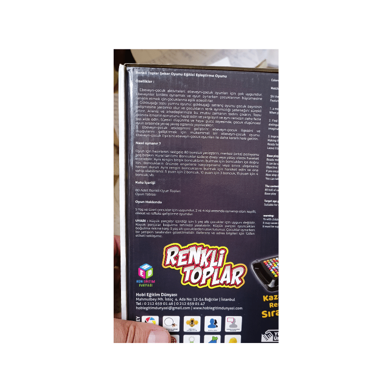 Kutu İçeriği:80 Adet Renkli Oyun Topları, Oyun Tablası