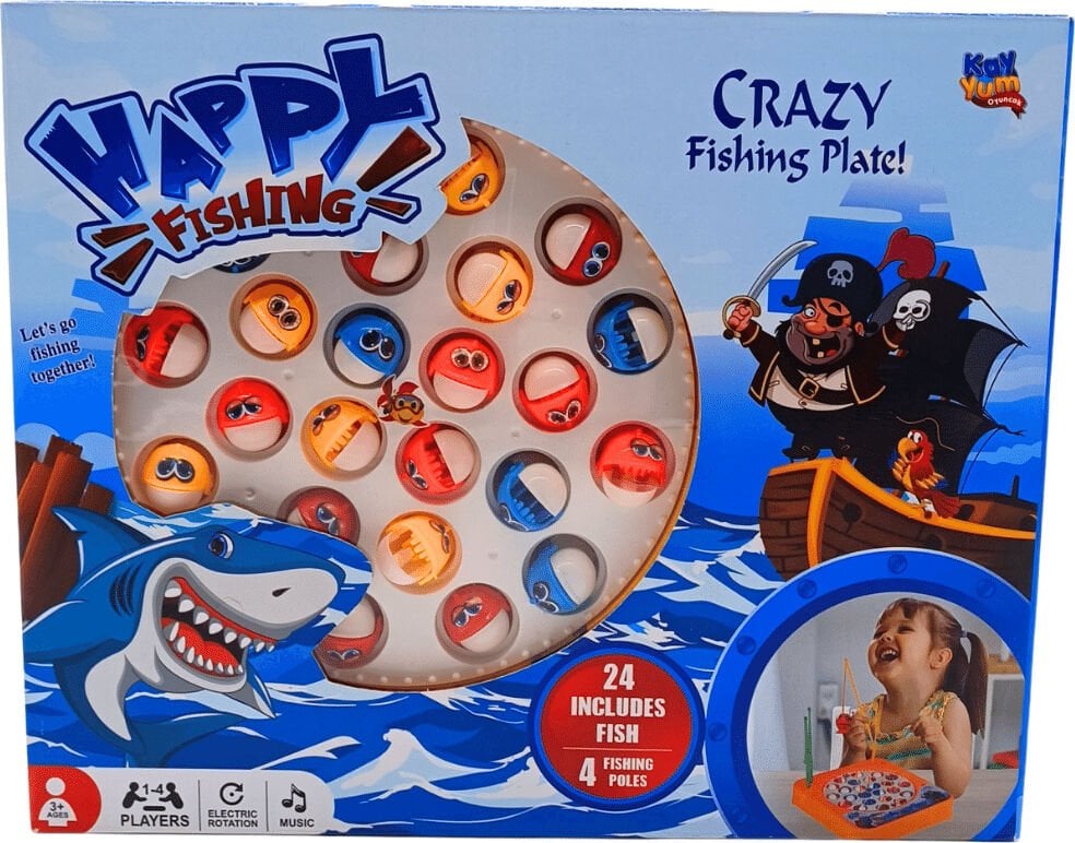 - Müzikli ve sesli döner platformda 24 adet balık ve 4 adet olta ile 1-4 kişi arası oynanabilir.
