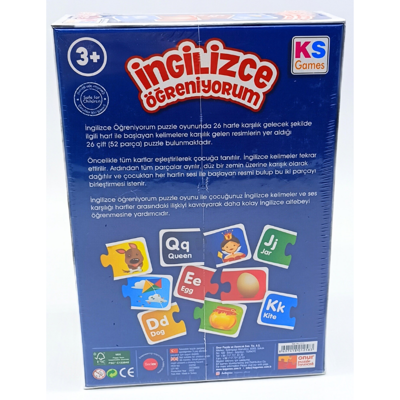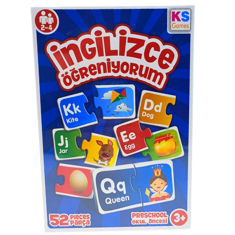 Yabancı dil eğitimine başlamanın en keyifli yolu! KS Games İngilizce Öğreniyorum, okul öncesi ve ilkokul çağındaki çocukların temel İngilizce kelimeleri kolayca kavraması için tasarlanmış harika bir eğitim setidir. Oyun, nesnelerin resimleri ile İngilizce isimlerinin yazılı olduğu puzzle parçalarını doğru şekilde eşleştirme mantığına dayanır.