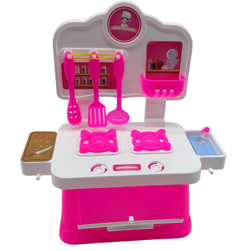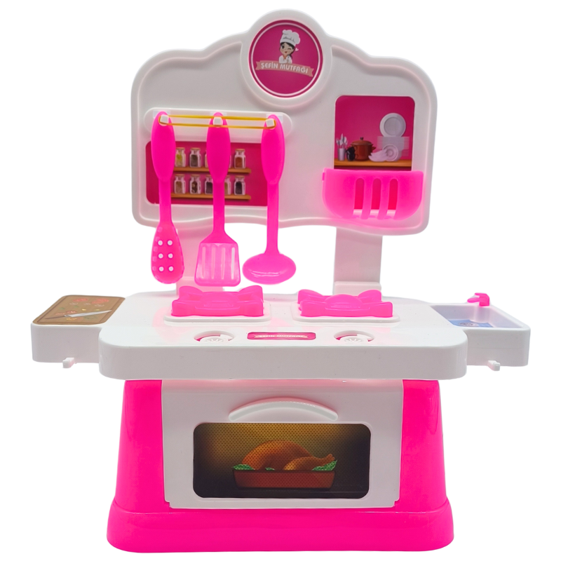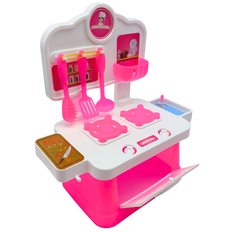 Fırının kapağı açılıp kapanabilir, böylece minikler hazırladıkları hayali kekleri ve kurabiyeleri fırına sürebilirler. Yan tarafında bulunan askılıklar ve sete dahil olan kepçe takımı sayesinde, çocuklar sadece yemek yapmayı değil, mutfak gereçlerini düzenli kullanmayı da öğrenirler. Evcilik oyunlarının vazgeçilmezi olacak bu set, renkli tasarımıyla çocuk odalarına neşe katacak!