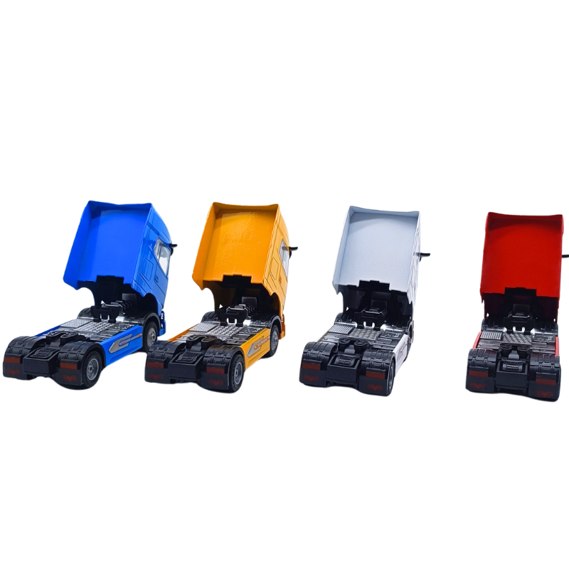 Yaklaşık 11 Cm uzunluğundaki bu tır kafası metal malzemeden oluşur. 4 Farklı renk tek pakette sizinle! Çek bırak yapısıyla eğlence sürekli devam eder. Pilli olan bu oyuncak ışıklıdır ve tır seslerini simüle eder. Gerçekçi bir deneyim sunan bu aracın gerçekte olduğu gibi kafası kalkar, ışıkları yanar.
