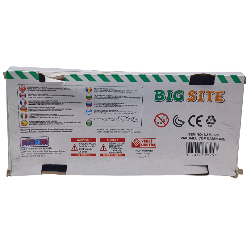 NZM-395, çocuklar için tasarlanmış vakumlu çöp kamyonu oyuncağıdır. 20 cm uzunluğundaki bu oyuncak kamyon, gerçekçi görselliğiyle çocukların oyun anlayışını renklendirir. Kamyonun çalıştırıldığında çöp toplar gibi “vakum / çek-çek” efekti vermesi; çocukların hayal gücünü, el-göz koordinasyonunu ve motor becerilerini destekler.