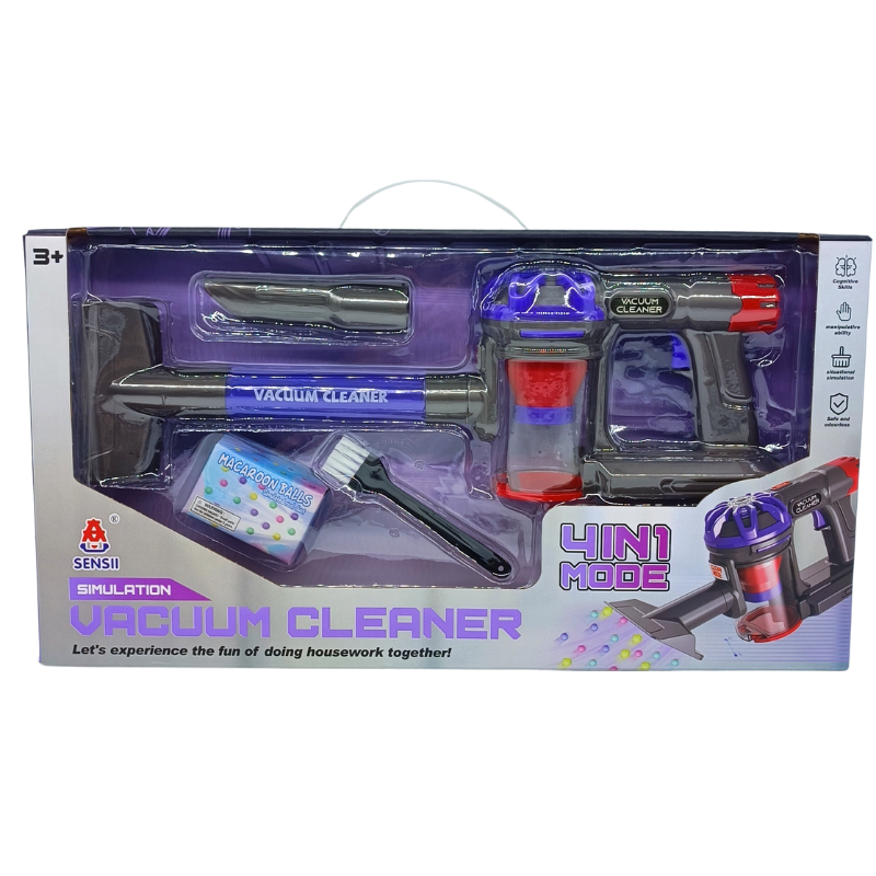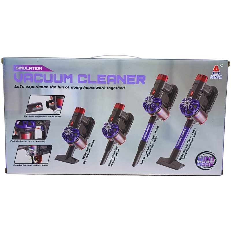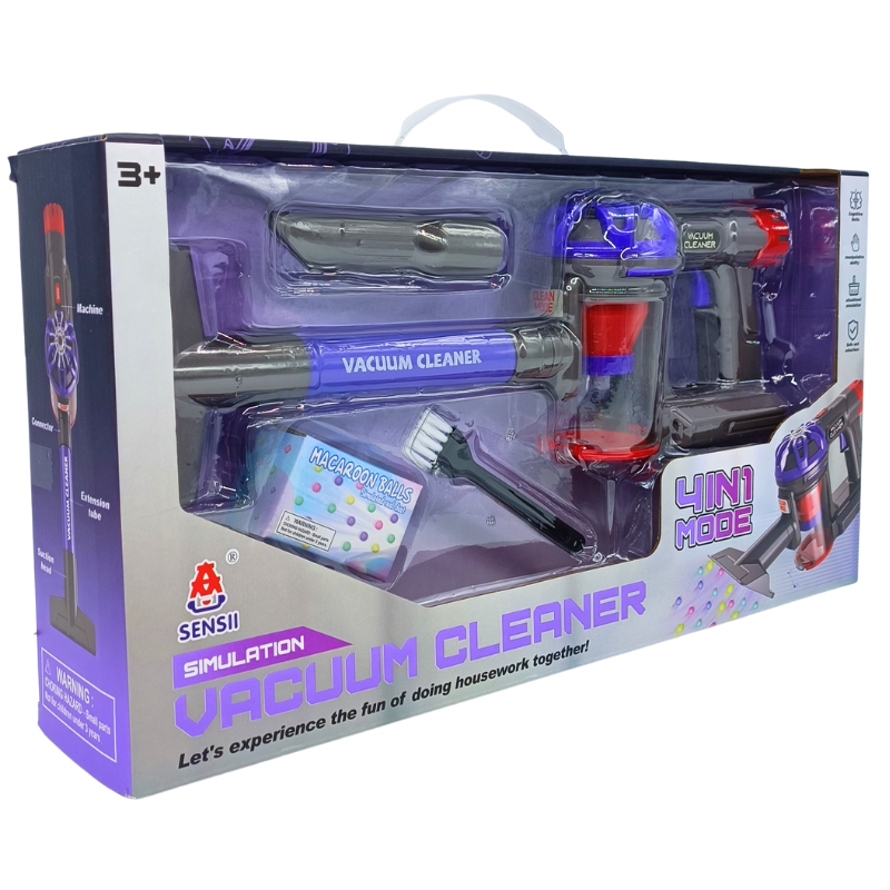 Şarjlı sistemi, kablo karmaşasını ortadan kaldırır; çocuklar süpürgeyi çalıştırıp temizlik taklaları yaparken el-göz koordinasyonlarını ve motor becerilerini geliştirir. Ev, oyun odası ya da mini oyuncak ev ortamında kullanılabilir. Oyuncak dikey süpürge kutu içerisinde temizlik için yapay tozlar bulunur. Şarjlı oyuncak dikey süpürge yaklaşık 35 Cm'dir.