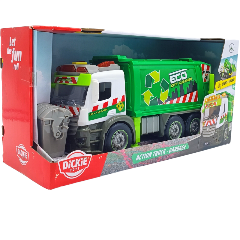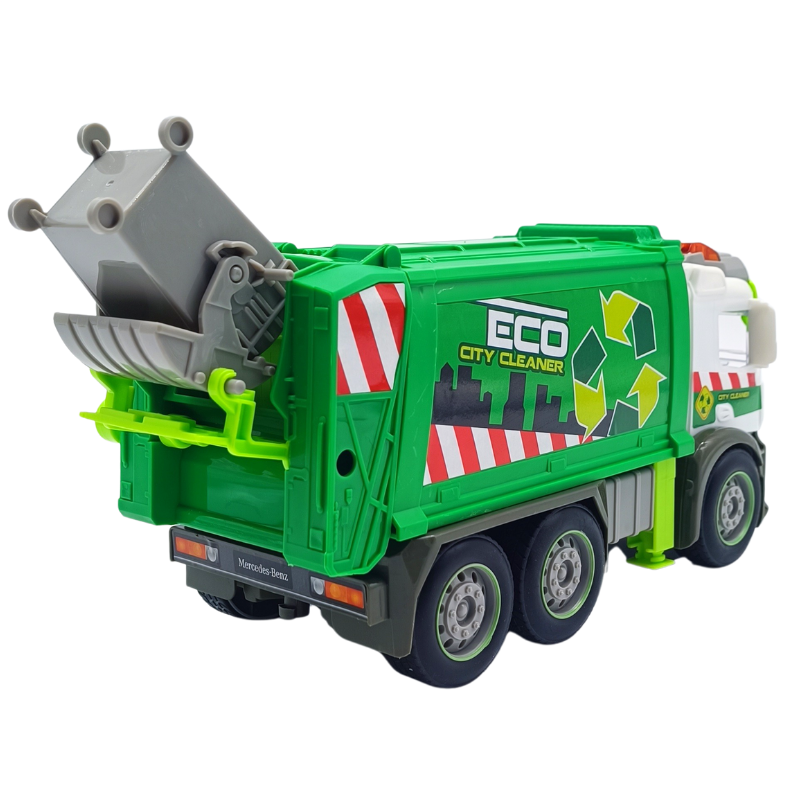 Temizlik ekibi göreve hazır! Dickie Toys Mercedes Çöp Kamyonu, orijinal Mercedes lisansıyla tasarlanmış, çocukların şehirdeki temizlik araçlarını yakından tanımasını sağlayan harika bir modeldir. Genellikle canlı turuncu rengiyle dikkat çeken bu kamyon, gerçeğine sadık detaylarıyla (Mercedes yıldız logosu, far detayları vb.) miniklerin hayranlığını kazanır.