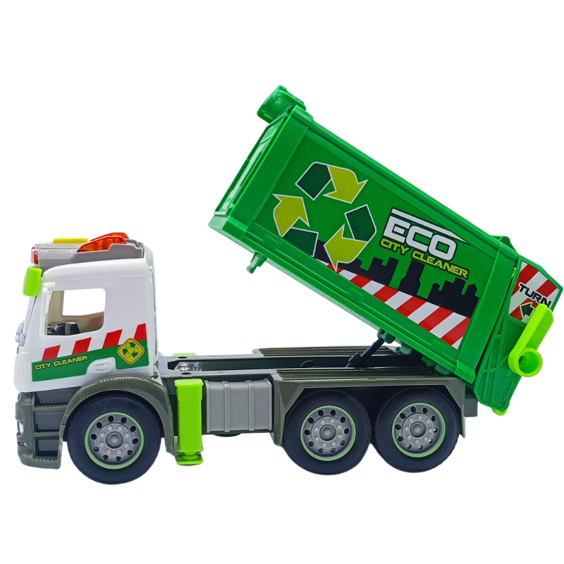 Aracın en önemli özelliği, işlevsel çöp boşaltma mekanizmasıdır. Çocuklar, setin yanında gelen çöp bidonunu aracın yan tarafındaki (veya modeline göre arkasındaki) kola takıp kaldırabilir ve çöpleri ana hazneye boşaltabilirler. Kamyon dolduğunda ise arka kapağı açıp çöpleri dökerek oyunu başa sarabilirler. Hem eğitici hem de çevre bilinci aşılayan, sağlam bir yol arkadaşıdır.