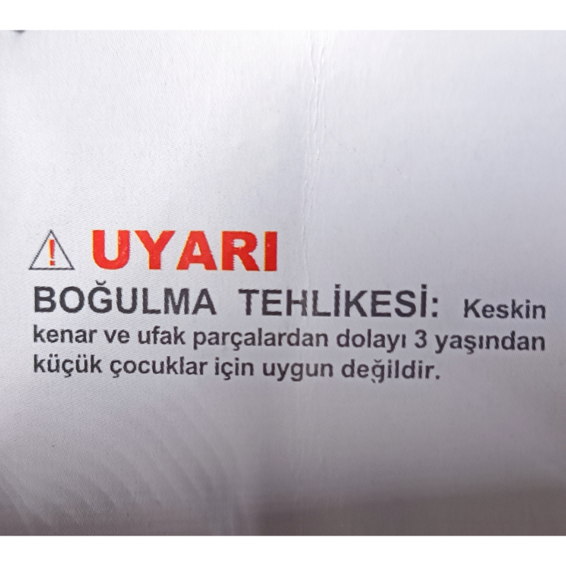 3 yaş ve üzeri çocuklar için uygundur. Boğulmaya neden olabilecek sivri ve küçük parçalar içerebilir. Ebeveyn denetiminde çocuğunuza veriniz. Ürünün ambalajı ürüne dahil değildir. Lütfen ürünü çocuğunuza vermeden önce ambalajını tamamen açınız ve ambalajını çocuğunuza vermeyiniz.