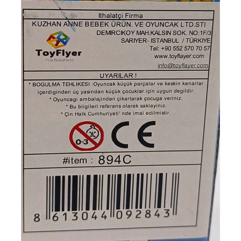 3 yaş ve üzeri çocuklar için uygundur. Boğulmaya neden olabilecek sivri ve küçük parçalar içerebilir. Ebeveyn denetiminde çocuğunuza veriniz. Ürünün ambalajı ürüne dahil değildir. Lütfen ürünü çocuğunuza vermeden önce ambalajını tamamen açınız ve ambalajını çocuğunuza vermeyiniz.